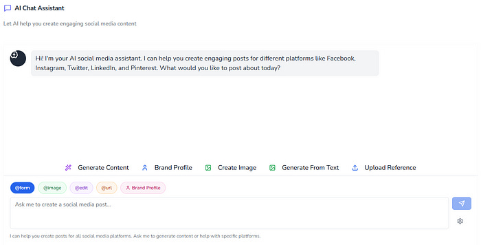 You can choose between Pinterest, Facebook, Instagram, and Linkedin — to make social media posts with the AI agent.
