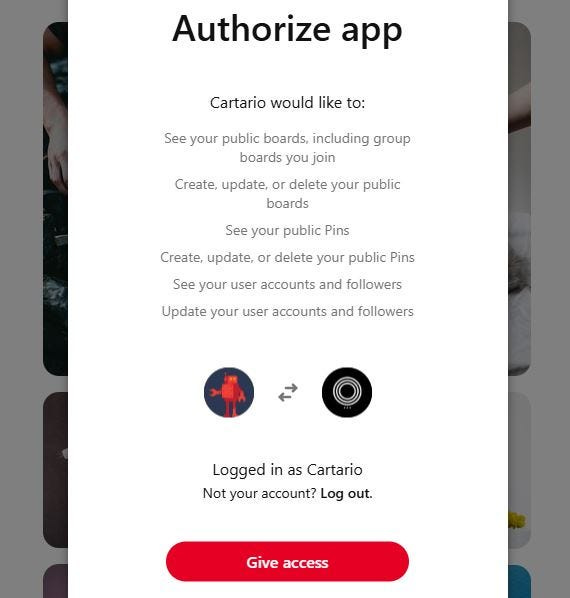 Here is an example of the power of the API for Pinterest posting.